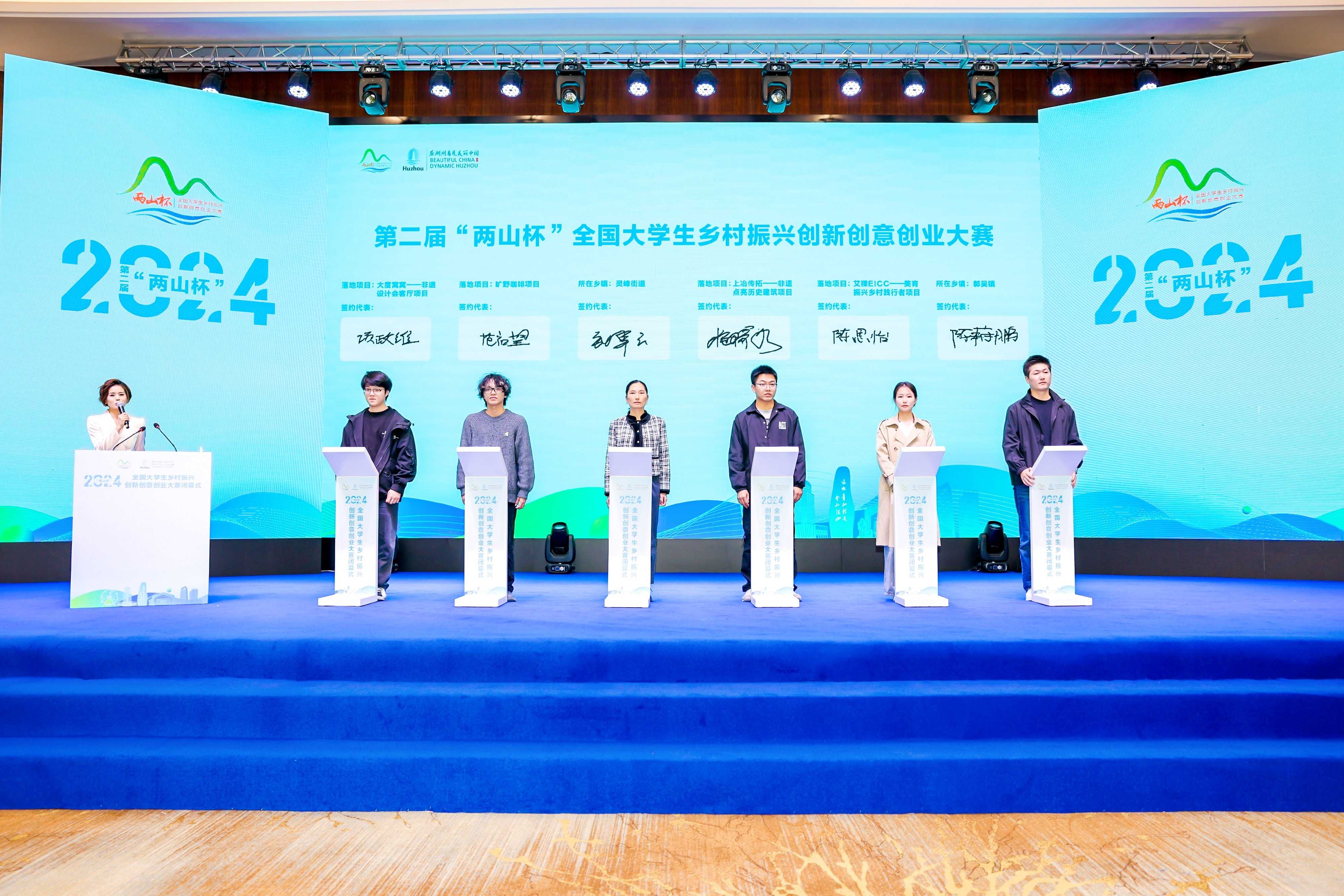 經(jīng)過初賽、復賽、決賽三級比拼,眾多優(yōu)秀參賽項目脫穎而出。閉幕式上,主辦方為部分優(yōu)秀項目團隊進行頒獎。其中,三等獎、二等獎團隊各8支,一等獎團隊4支。同時,8個落地項目代表與賽點鄉(xiāng)鎮(zhèn)進行了現(xiàn)場簽約。