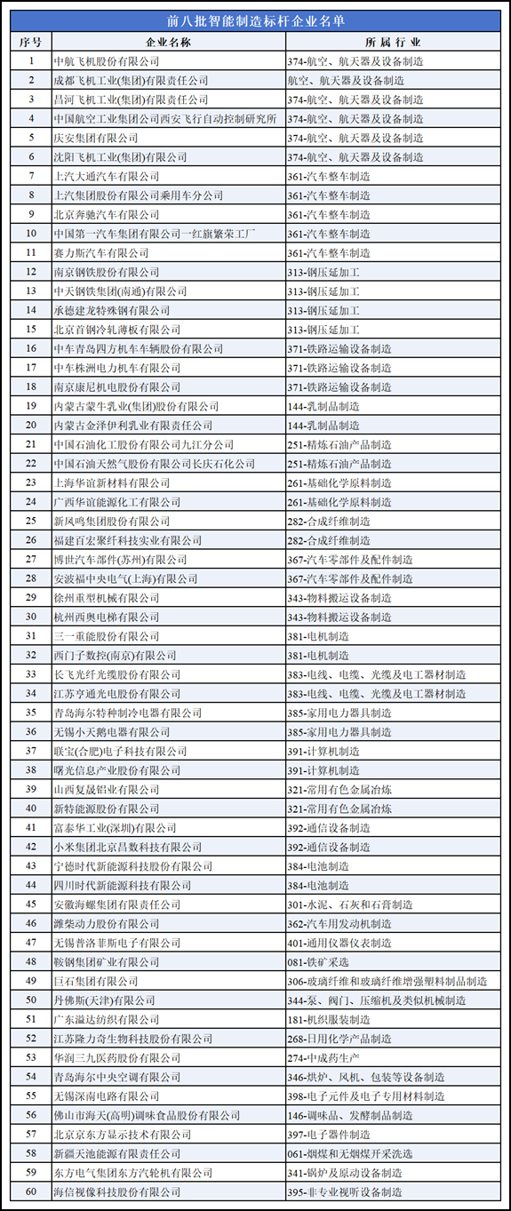 前八批智能制造標(biāo)桿企業(yè)名單