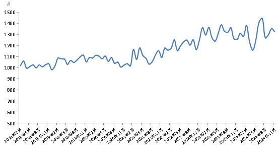 分城市來(lái)看,截至2024年11月,北京、上海、呼和浩特、重慶、南昌、蘭州、烏魯木齊、南京、武漢、長(zhǎng)春、鄭州、西寧、貴陽(yáng)、青島超市銷售食用鹽均價(jià)較2024年10月上漲;哈爾濱、濟(jì)南超市銷售食用鹽均價(jià)較2024年10月持平;廣州、合肥、西安、銀川、天津、南寧、杭州、太原、長(zhǎng)沙、昆明超市銷售食用鹽均價(jià)較2024年10月下跌。