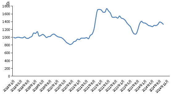 新華財經(jīng)北京12月11日電(陸子琛、馬兵)11月份,新華·中鹽兩堿工業(yè)鹽價格指數(shù)報133.75點,較上期(2024年10月)下跌41.73點,跌幅3.03%;較基期(2018年1月)上漲333.75點,漲幅33.38%;較周期內(nèi)最高點1736.66點(2022年4月)下跌402.91點,跌幅23.20%;較周期內(nèi)最低點816.2點(2020年8月)上漲517.55點,漲幅63.41%。