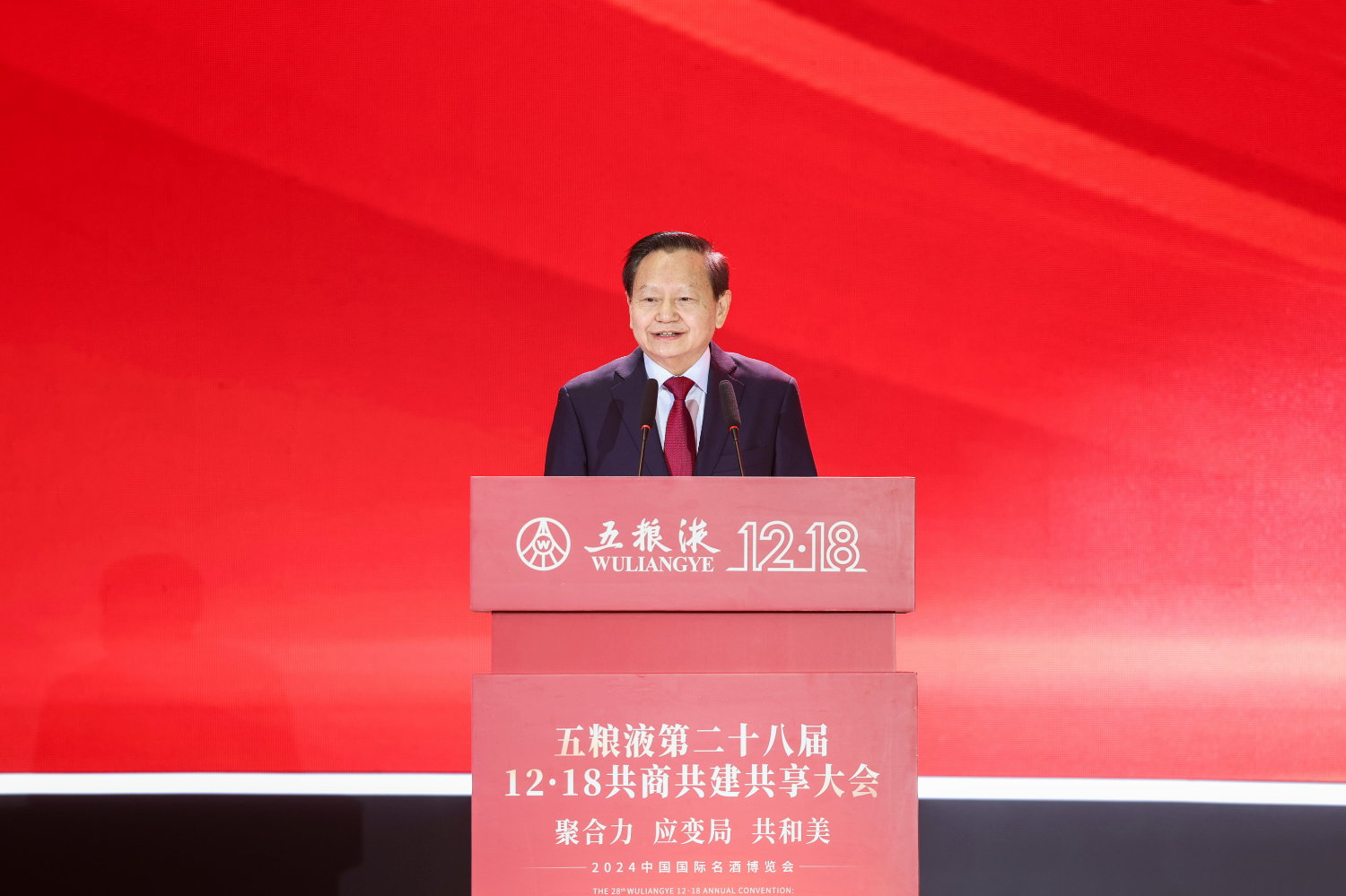 圖為五糧液集團(股份)公司黨委書記、董事長曾從欽發(fā)表主旨演講