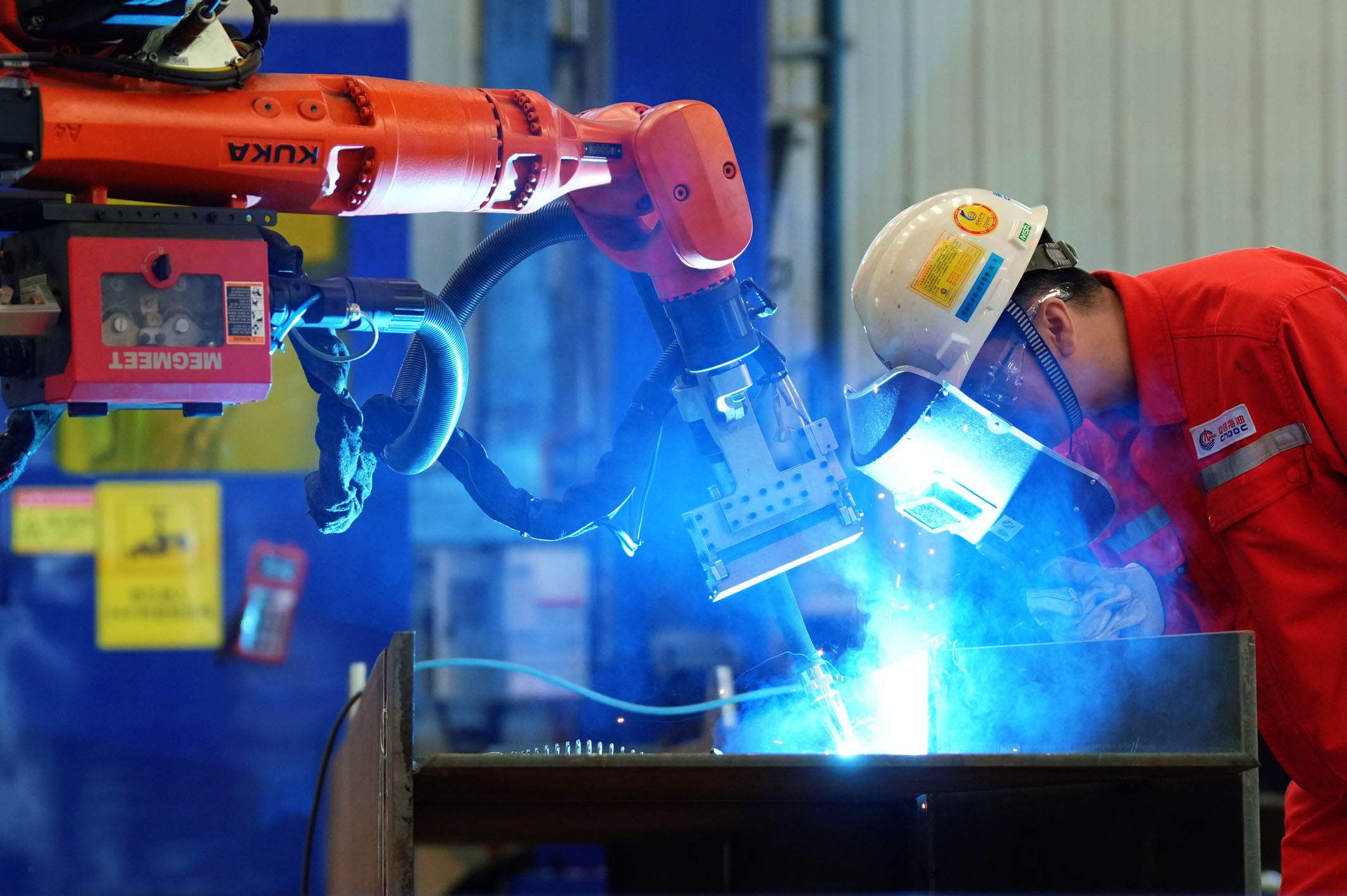 圖為工作人員在海油工程天津智能制造基地查看一款機(jī)器人智能焊接系統(tǒng)作業(yè)。記者 趙子碩 攝