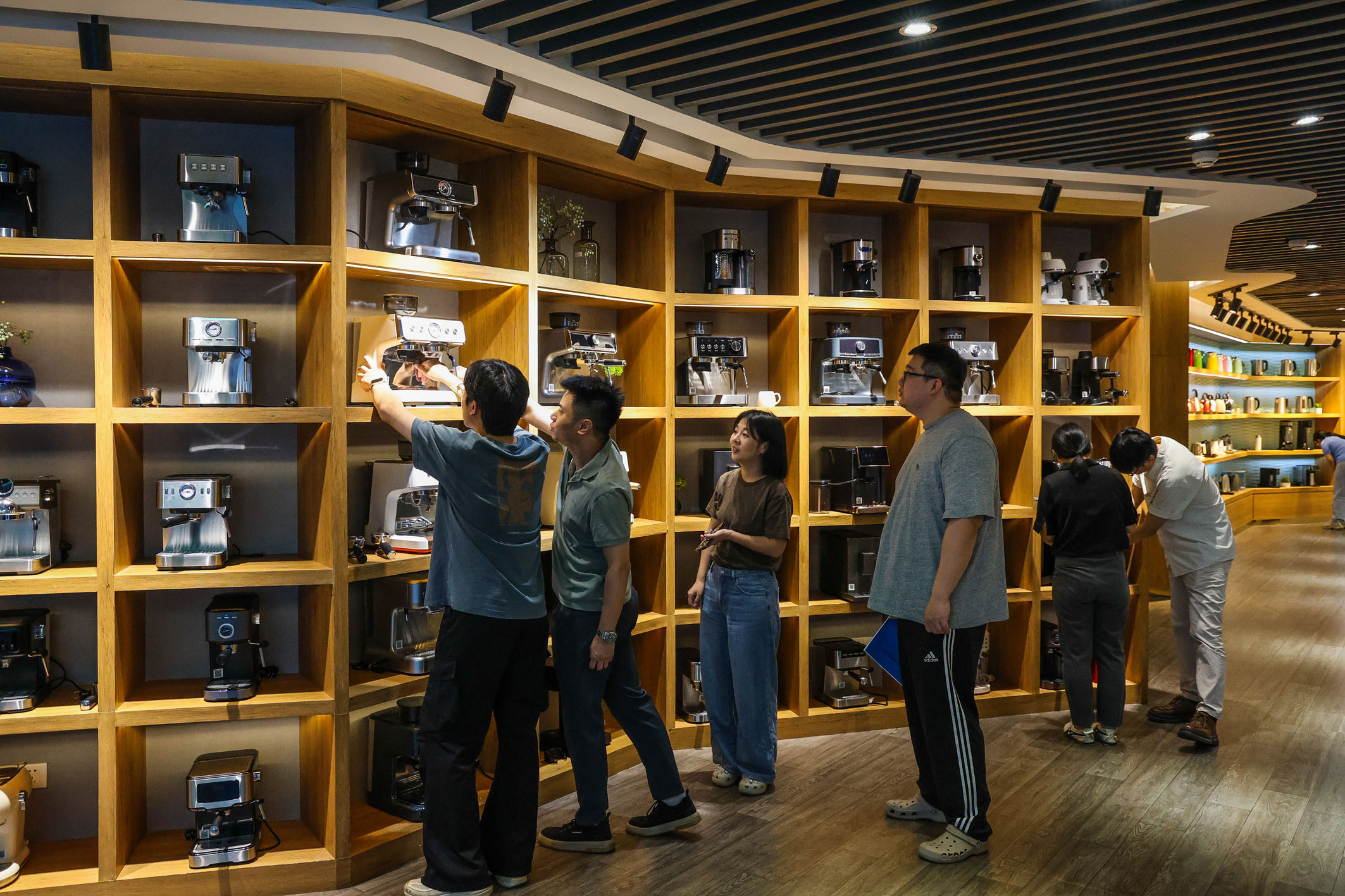 客戶在廣東新寶股份出口小家電展廳了解產(chǎn)品信息。 新華社記者 劉大偉 攝