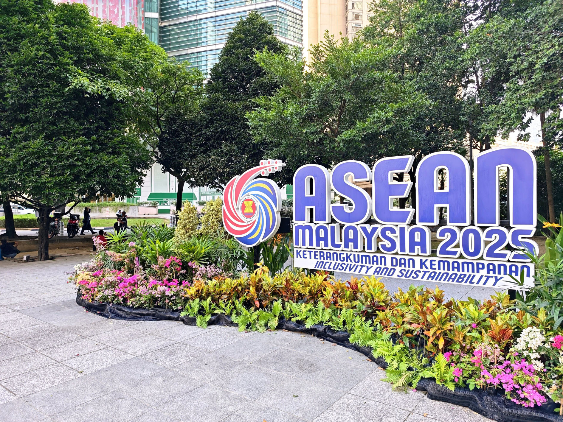 圖為在馬來西亞首都吉隆坡街頭拍攝的東盟峰會標識。第47屆東盟峰會及系列會議于10月26日至28日舉行,東盟各國領(lǐng)導(dǎo)人將重點討論東盟共同體建設(shè)及對外關(guān)系等議題。