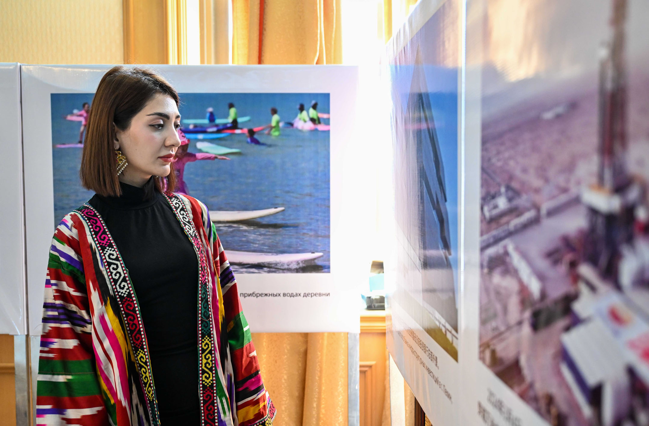 “奇跡新篇章——新華社鏡頭里的中國式現(xiàn)代化”圖片展和中塔合作對話會日前在中國駐塔吉克斯坦大使館舉行。塔政界、媒體界等約50名代表參觀展覽,并圍繞“中國共產黨二十屆四中全會為中塔合作創(chuàng)造巨大機遇”展開交流。圖為塔吉克斯坦首都杜尚別一名觀眾參觀圖片展。