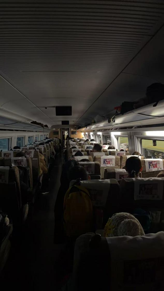 據(jù)上述乘客稱,該列列車原本在17點(diǎn)12分發(fā)車,檢票后乘客正在上車時(shí)列車突然斷電,乘客全部上車后車門封閉、列車燈光關(guān)閉,僅留有應(yīng)急燈,衛(wèi)生間飲水機(jī)等功能也不能使用。