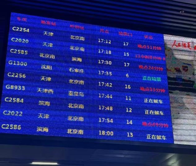 上述乘客稱,據(jù)列車上的乘警反饋,故障原因疑似為線路故障,京津線路的列車都發(fā)生了停運(yùn)的情況,涉及武清等站的列車。