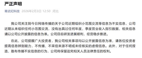 針對(duì)市場(chǎng)流傳的“2026年?duì)I收指引不及預(yù)期”等傳聞,23日午間,寒武紀(jì)(688256.SH)通過(guò)其微信公眾號(hào)發(fā)布聲明稱(chēng),公司關(guān)注到今日網(wǎng)絡(luò)傳播的關(guān)于公司近期組織小范圍交流等信息為不實(shí)信息。
