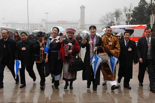 3月3日15時,中國人民政治協(xié)商會議第十屆全國委員會第五次會議在北京人民大會堂開幕。這是全國政協(xié)委員在北京的春雨中走向人民大會堂。