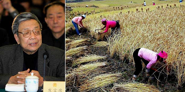 全國政協(xié)委員、中國農業(yè)大學教授楊志福(左圖)認為,必須依靠現(xiàn)代農業(yè)科學技術,增加對糧食生產的投入,包括政策投入、資金投入、物資投入、科技投入,使糧食生產穩(wěn)步上升,確保我國糧食安全。新華社記者 李濤 攝 右圖為貴陽市花溪區(qū)高坡鄉(xiāng)的農民在收割稻谷(資料照片)。新華社發(fā)