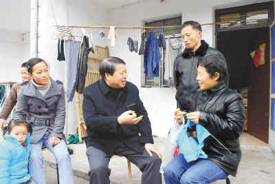 全國人大代表、浙江省奉化市滕頭村黨支部書記傅企平(中)在農(nóng)民家里調(diào)研。袁坤