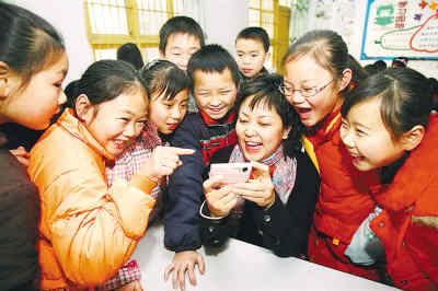 2月28日上午,即將赴京開會的全國人大代表吳新春(中)在四川省遂寧市船山區(qū)農(nóng)民工子弟學校——天宮廟小學看望孩子們,了解學校義務教育情況。鐘敏