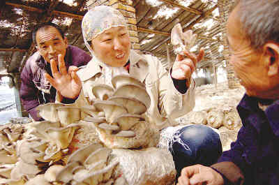 2月27日,全國人大代表魯中祝(中)深入農(nóng)戶家中,了解蘑菇種植戶需求和生產(chǎn)生活中的困難。陳彬 攝 |