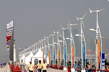| 奧林匹克帆船中心安裝了168盞太陽能景觀燈、41盞風(fēng)能路燈,體現(xiàn)了“綠色奧運(yùn)”的主題。新華社記者 趙穎全