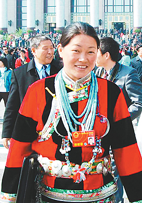 自從2003年當選十屆全國人大代表以來,這樣的場面她見多了,已經(jīng)看不到當年一說話就紅臉低頭的羞澀。 “我是沾了珞巴族的光!睍约t說,“每次到北京開會,我都會提醒自己,我代表的是一個民族,我是珞巴族的唯一代表。一想到這兒,就會產(chǎn)生一種神圣感!” 珞巴族,中國人口最少的一個民族,只有3000人左右,主要分布在西藏東起察隅、西至門隅之間的珞瑜地區(qū),有自己的語言,沒有本民族文字,長期保留著刻木結(jié)繩記數(shù)記事的原始方法!扮蟀汀笔遣刈鍖λ麄兊姆Q呼,意為“南方人”。 曉紅說:“過去,珞巴族屬于被壓迫的民族,長期偏居深山,新中國成立后才翻身做主,正式定名為珞巴族。從那時起,珞巴族人和西藏其他少數(shù)民族一樣,也獲得了與藏族人同等的政治、經(jīng)濟和人身自由的權(quán)利,歷屆全國人大和全國政協(xié)都為我們各保留一名代表和委員的名額! 珞巴族人只有名,沒有姓,曉紅的全名就叫曉紅。曉紅的父母都是當?shù)冂蟀妥遛r(nóng)民。1996年,她從西藏農(nóng)牧學院畢業(yè)后,被分配到林芝地區(qū)米林縣米林鎮(zhèn)政府工作,4年后被任命為副鎮(zhèn)長,2005年7月起擔任米林縣南伊珞巴民族鄉(xiāng)鄉(xiāng)長。她務實、能干,在當?shù)乜诒芎谩?BR> “這幾年,我利用參加全國兩會的機會,直接向國家領(lǐng)導人反映珞巴族人的意愿,這是以前想都不敢想的事!睍约t話語里充滿了自豪。在她家,還有一位“名人”:公公達登連續(xù)當選九屆、十屆全國政協(xié)委員。 “我能再次當選全國人大代表,既是珞巴族人的榮耀,也說明黨和國家對少數(shù)民族的關(guān)心和重視。”曉紅告訴記者,五年前她提出的有關(guān)西藏米林縣南伊珞巴民族鄉(xiāng)的公路、電、房、通信等基礎(chǔ)設(shè)施建設(shè)問題,目前已全部解決。