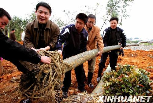[影像鏈接] 這是福州市倉山區(qū)干部群眾在道路兩側(cè)種植景觀樹(2007年3月18日攝)。新華社發(fā)