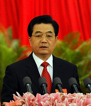 | 國家主席胡錦濤發(fā)表重要講話。新華社記者 馬占成