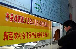 一名病人家屬正在蘭州市榆中縣第一人民醫(yī)院咨詢(xún)相關(guān)情況(2007年1月24日攝)。 根據(jù)3月5日提請(qǐng)十屆全國(guó)人大五次會(huì)議審查的2007年中央和地方預(yù)算草案,今年中央財(cái)政總支出將達(dá)26871.08億元。這些支出將會(huì)花在哪些地方?全國(guó)人大代表和普通百姓都很關(guān)注。“取之于民,用之于民”,“著力解決民生問(wèn)題”,“讓全體人民享受改革發(fā)展成果和公共財(cái)政陽(yáng)光”,是預(yù)算草案最突出的理念。強(qiáng)化支農(nóng)惠農(nóng)政策、增加就業(yè)和社會(huì)保障支出、解決“上學(xué)難、上學(xué)貴”和“看病難、看病貴”等問(wèn)題……把草案中有關(guān)民生問(wèn)題的支出內(nèi)容串在一起,就凝聚為一份引人注目的中央財(cái)政“民生清單”。新華社發(fā) |