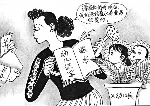 | 據(jù)媒體報(bào)道,有的城市幼兒園不光是高額收取孩子入托收費(fèi)、伙食收費(fèi),還另外要孩子交“識(shí)字費(fèi)”,每教會(huì)孩子識(shí)一個(gè)漢字,再多收五角錢(qián)。這種巧立名目的收費(fèi)顯然不符合國(guó)家政策,F(xiàn)在國(guó)家已出臺(tái)九年義務(wù)教育,為老百姓減輕了不少負(fù)擔(dān),幼兒園的學(xué)前教育也不應(yīng)例外,希望有關(guān)部門(mén)對(duì)學(xué)前幼兒教育嚴(yán)格規(guī)范。 | |