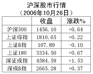 10月26日,國內(nèi)股市銀行板塊和房地產(chǎn)板塊等再次有所表現(xiàn),并帶動大盤繼續(xù)震蕩上行,最終滬深市場續(xù)收陽線,兩市出現(xiàn)了三連陽,兩市的成交量也有所放大。雖然深市表現(xiàn)強于滬市,但市場整體維持強勢,為周五工行上市做好迎接準備。