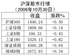 消息面上,上海證券交易所最新統(tǒng)計(jì)數(shù)據(jù)顯示,截至10月27日,上海證券交易所2006年股票交易金額突破40000億元,達(dá)到40208.86億元。這一金額不僅高于去年全年的股票交易金額,同時(shí)也創(chuàng)了上海市場開市以來股票年成交金額的歷史新高。