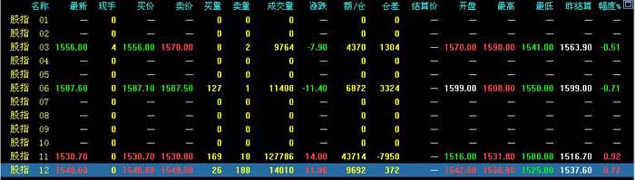 滬深300指數(shù)11月7日收盤1516.10點(diǎn),上漲8.21點(diǎn)。上圖為金交所滬深300股指期貨仿真交易主力合約盤面數(shù)據(jù)。(供圖:廣發(fā)期貨) |