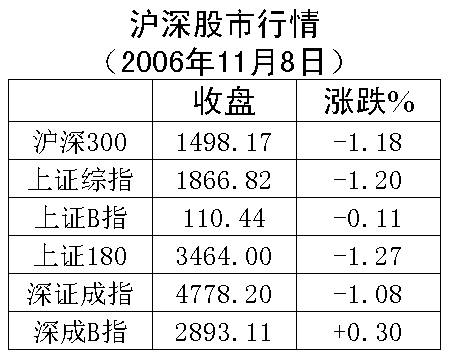 8日,滬深兩市股指略有低開,個股開盤表現(xiàn)散亂。其后,在權(quán)重股板塊整體下挫的拖累下,兩市均震蕩走低,全天未有翻紅,最終雙雙收出光頭短下影的中陰線,滬深股市跌幅均超過1%。同時,兩市成交量的萎縮和下跌家數(shù)的逐步增加,導(dǎo)致市場短線分歧繼續(xù)加大。
