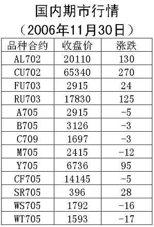 11月30日國內(nèi)期貨市場各品種漲跌互現(xiàn),盤中震蕩的幅度不大。