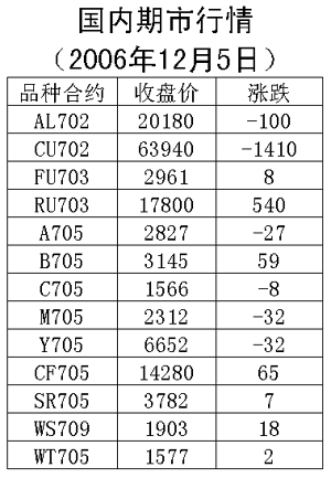 5日國內(nèi)期貨市場能源品種上漲,其余品種下跌。