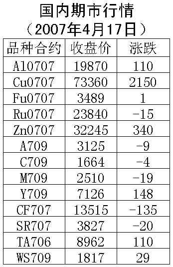 17日,國內(nèi)期貨市場(chǎng)強(qiáng)麥上漲,其余各品種均下跌。倫敦銅市場(chǎng)周一上漲37.5美元/噸,收盤7770美元/噸。滬銅707合約周二下跌740元/噸,收盤72380元/噸,支撐價(jià)位72000元一線,上漲壓力75000元一線。倫敦鋁周一上漲18美元/噸,收盤2832.5美元/噸。滬鋁707合約周二下跌40元/噸,收盤19840元/噸,支撐價(jià)位19500元一線,上漲壓力20400元一線。