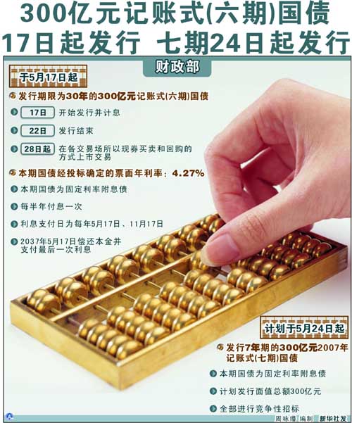 300億元記賬式(六期)國(guó)債17日起發(fā)行[圖表]