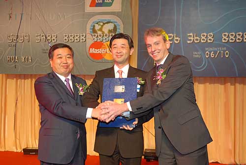 最近,華夏銀行消息面看點(diǎn)較多。一是華夏銀行高層變動(dòng)。日前,華夏銀行公告稱,董事會(huì)已通過(guò)決議,同意劉海燕董事長(zhǎng)的辭職,并通過(guò)選舉黨委書記翟鴻祥為董事候選人。有預(yù)測(cè)認(rèn)為,如無(wú)意外,翟鴻祥將成為下一任董事長(zhǎng)人選,F(xiàn)年61歲的翟鴻祥于今年5月底辭去了北京市常務(wù)副市長(zhǎng)的職務(wù),十分熟悉金融業(yè)。 二是華夏銀行與德意志銀行的合作成果顯著。德意志銀行所持股份占總股本的7.02%,其旗下子公司德意志銀行盧森堡股份有限公司持有總股本2.88%的股份,薩爾奧彭海姆股份有限合伙企業(yè)將持有4.08%的股份。目前華夏銀行與德意志銀行的合作正在有序推進(jìn),雙方在貿(mào)易融資、外幣清算、基金代銷、人員培訓(xùn)等方面的合作已取得初步成果。 圖為華夏銀行副行長(zhǎng)李國(guó)鵬、德意志銀行私人和工商金融企業(yè)金融服務(wù)部亞太區(qū)總裁謝鵬德向華夏銀行信用卡中心首席執(zhí)行官侯平授卡,標(biāo)志著華夏銀行信用卡業(yè)務(wù)正式啟動(dòng)。 |