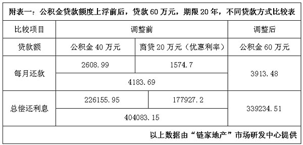 那么與商貸相比公積金貸款能為消費者節(jié)省多少利息支出呢?對此,業(yè)內(nèi)人士為記者詳細(xì)算了一筆經(jīng)濟(jì)賬。 北京房產(chǎn)中介鏈家地產(chǎn)副總經(jīng)理金育松舉例子說,如果李先生購買了一套價值75萬元的房產(chǎn),最高貸款額度為60萬元。李先生具有公積金貸款的條件,在貸款額度上調(diào)前,由于原公積金貸款最高額度為40萬元,因此,李先生只能選擇公積金貸款40萬元及商貸20萬元的組合貸款,貸款年限20年;而在最高額度上調(diào)后,李先生所貸款的60萬元,可全部選擇公積金貸款方式。為了方便對比參考,我們均采用等額本息還款法進(jìn)行計算,可以發(fā)現(xiàn)公積金貸款方式的優(yōu)勢十分明顯。(見附表一) 金育松說,通過表格對比可以看出,公積金貸款額度調(diào)高以后,60萬元可全部使用公積金貸款,每月還款額比調(diào)整前的組合貸款少還270.21元,總償還利息可節(jié)省64848.64元。另外,辦理組合貸款比單純辦理公積金貸款手續(xù)更多、需時更長、手續(xù)費更多,部分購房者甚至因為組合貸款太繁瑣轉(zhuǎn)而全部采用商貸,而此次公積金上浮最高額度后,部分購房者可直接選用公積金貸款,既省錢又省時省心。 對此,殷麗娟表示贊同。她說,無論是與組合貸款方式進(jìn)行比較,還是單純將商貸與公積金貸款方式進(jìn)行比較優(yōu)勢都十分明顯。 殷麗娟舉例子說,比如,在國家某機(jī)關(guān)工作的唐先生想在北京亞運村一帶買一套評估價為60萬元、面積是70平方米的二居室。夫婦多年積攢了20萬元,以唐先生貸款40萬元買房為例,如果其貸款年限為15年,那么,按照商貸基準(zhǔn)利率7.20%計算,等額本息還款方式月供為3640.19元,而公積金適用利率為4.86%,同樣方式月供是3134.08元,如果不提前還款兩者相比較公積金總共比商貸共節(jié)省91099.29元。即使在優(yōu)惠利率下,公積金仍比商貸節(jié)省約48120.30元。由此可見,公積金貸款買房省錢優(yōu)勢明顯。