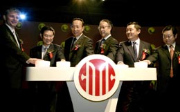 中信銀行行長陳小憲(左三)等嘉賓在北京舉行的“中信財富階梯”服務(wù)品牌啟動儀式上。新華社記者:陳建力 攝