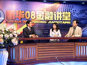 | 圖為上海黃金交易所理事長沈祥榮(左一)在“新華08”金融大講堂上接受訪談。本報記者 陳圣莉