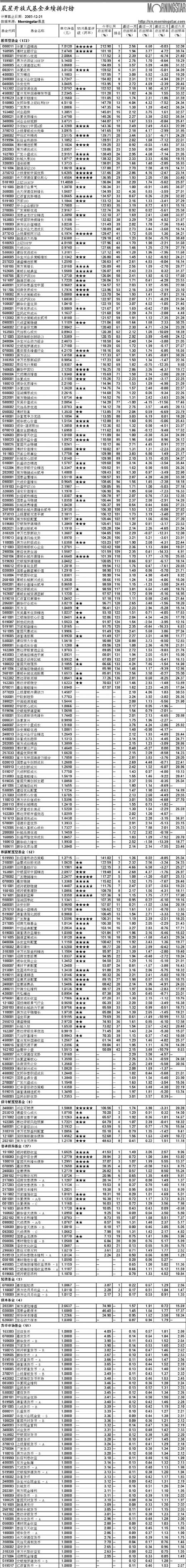 晨星開放式基金業(yè)績(jī)排行榜[2007-12-21]