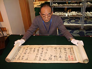 | 在西泠印社2007年秋季藝術(shù)品拍賣會上,明末清初書法家王鐸作品《草書詩卷》以1691萬元的成交價(jià),成為2007年國內(nèi)拍賣成交價(jià)最高的書法作品。本報(bào)記者