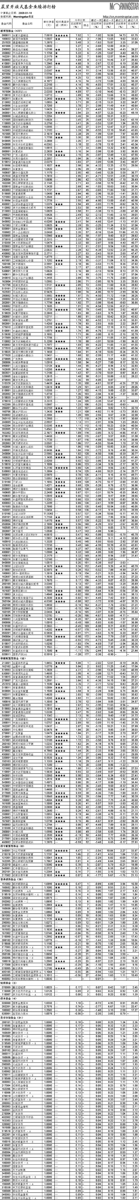 晨星開放式基金業(yè)績(jī)排行榜【2008-01-11】