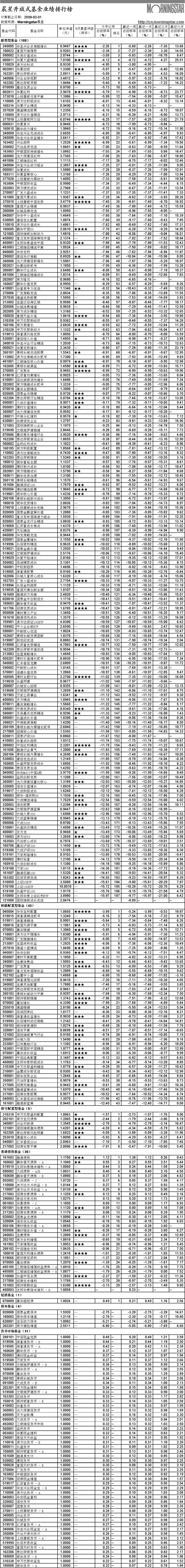 晨星開放式基金業(yè)績排行榜[2008-02-01]