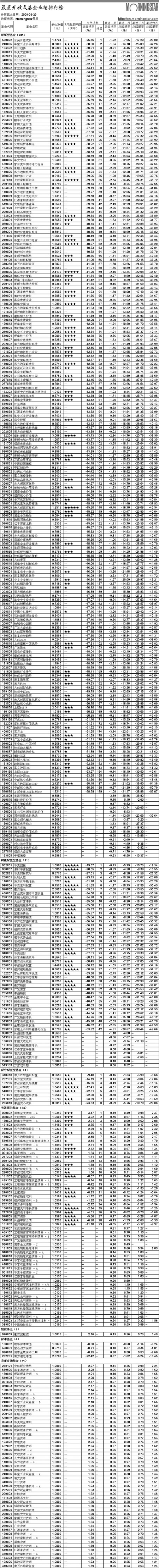 晨星開放式基金業(yè)績排行榜[2008-09-01]