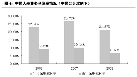 中信建投證券研究發(fā)展部金融服務業(yè)分析師魏濤分析說,2008年中國人壽取得了高達50.34%的壽險保費增長率,但標準保費利潤率由26.7%下降為21%,而首年保費利潤率則由10%下降為6.6%。從香港準則下保費數(shù)據(jù)來看,期繳占比很低的總投資型合同收入增長率為101%,遠高于總保費收入增速23.1%。 他認為,這是公司在競爭情勢下,對規(guī)模和效益作出抉擇后的戰(zhàn)略選擇。 中國人壽保險股份有限公司總裁萬峰在3月26日的業(yè)績發(fā)布會上強調,中國人壽今年要進一步調整業(yè)務結構,加大長期期交型、保障型產(chǎn)品發(fā)展力度,實行“轉型增效”。從今年一季度情況看,轉型效果非常明顯,5年以上、10年以上期交業(yè)務增長強勁。