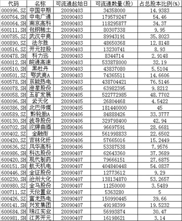 限售股解禁時間表