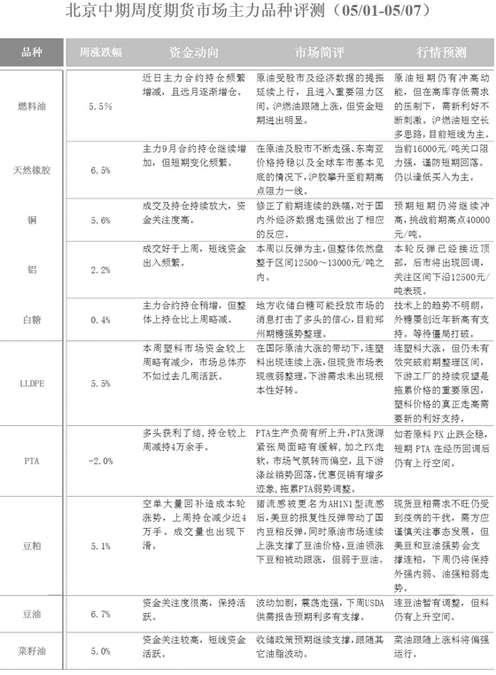 期貨市場(chǎng)主力品種評(píng)測(cè)(5月1日-7日)