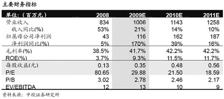 元,按照轉(zhuǎn)增后總股本(10轉(zhuǎn)增3)攤薄每股收益0.05元。對比公司2008和2009年的1季度財報,差異較大的會計科目在于三費,2009年1季度公司銷售費用和管理費用同比分別增長484.06%和87.02%,達到1789萬元和2520萬元。財務(wù)費用同比增長157.33%達到1140萬元。該三項費用合計同比增加3352萬元,使凈利潤同比減少約3000萬元,造成2009年1季度公司收入穩(wěn)步增長而凈利潤同比大幅下降。 值得肯定的一點是,2009年一季度凈利潤基本上都是由主營業(yè)務(wù)貢獻,在不發(fā)生2008年4季度大規(guī)模非經(jīng)常性損失的前提下,有線網(wǎng)絡(luò)業(yè)務(wù)的穩(wěn)定性特點是公司未來收入和盈利的保障。公司計劃2009年實現(xiàn)營業(yè)收入9億元、凈利潤7000萬元,1季度已經(jīng)完成收入和凈利潤指標(biāo)的24.69%和32.41%。 國泰君安研究所表示,如果以1季度業(yè)績?yōu)樗{本預(yù)測,則公司全年業(yè)績很有可能超預(yù)算。但鑒于公司連續(xù)兩年低于預(yù)期的歷史,仍然維持2009-2011年全面攤薄每股收益分別為0.17元、0.21元、0.25元的盈利預(yù)測。對應(yīng)當(dāng)前股價的市盈率分別為53.6倍、44.2倍、36.3倍,對應(yīng)除權(quán)后股價對應(yīng)市盈率分別為41.3倍、34