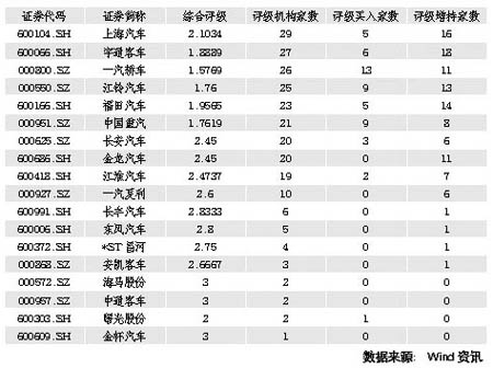 天相投顧的報告也表示,在行業(yè)投資機會上,2009年汽車行業(yè)的三大投資主題是新能源汽車、節(jié)能減排(老舊汽車報廢更新屬于節(jié)能減排)和汽車下鄉(xiāng);維持汽車及配件行業(yè)的增持投資評級?紤]到重卡行業(yè)可能進一步出臺刺激政策,持續(xù)關(guān)注中國重汽(買入)和濰柴動力(增持)。此外,給予增持評級的還有宇通客車、上海汽車、福田汽車和長安汽車等。