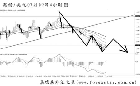 ▲英鎊兌美元此前對于1.6660的高點(diǎn)發(fā)生了假突破之后下落迅速,斜率陡峭,順利地將1.6200一帶的初步支撐跌破。下方英鎊將要挑戰(zhàn)的位置是6月初的低點(diǎn)1.5800,后市英鎊小幅回調(diào)后將延續(xù)其下跌的走勢。