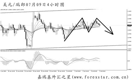 ▲美元兌瑞郎仍未能突破震蕩區(qū)間,后市匯價再創(chuàng)新低的希望很大。關(guān)注下方1.0650到1.0590一線的支撐作用,雖然短線的動能仍在交替,但仍將以下行為主基調(diào)。
