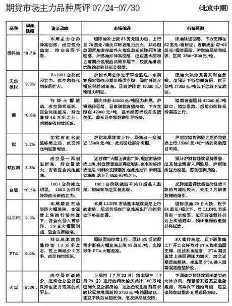 期貨市場(chǎng)主力品種周評(píng)[07/24-07/30]