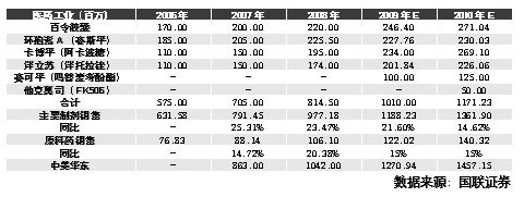 “西安博華和九州兩個子公司的經(jīng)營情況也將好轉(zhuǎn),如西安博華將增加原料藥和制劑品種,并正在做原料藥和中間體的出口準備工作。另外,產(chǎn)品可待寧波子公司代理銷售,充分發(fā)揮公司內(nèi)部子公司間的協(xié)同效應,有利于西安二子公司彌補其銷售能力有限的不足,促進產(chǎn)品銷售的增長!敝行抛C券分析師姚杰認為。
