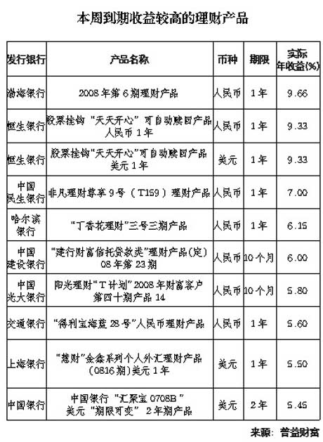 本周到期收益較高的理財(cái)產(chǎn)品[圖表]